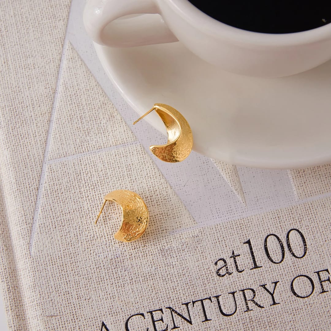 Our Hailey Earrings feature a crescent moon shape with hammered texture.