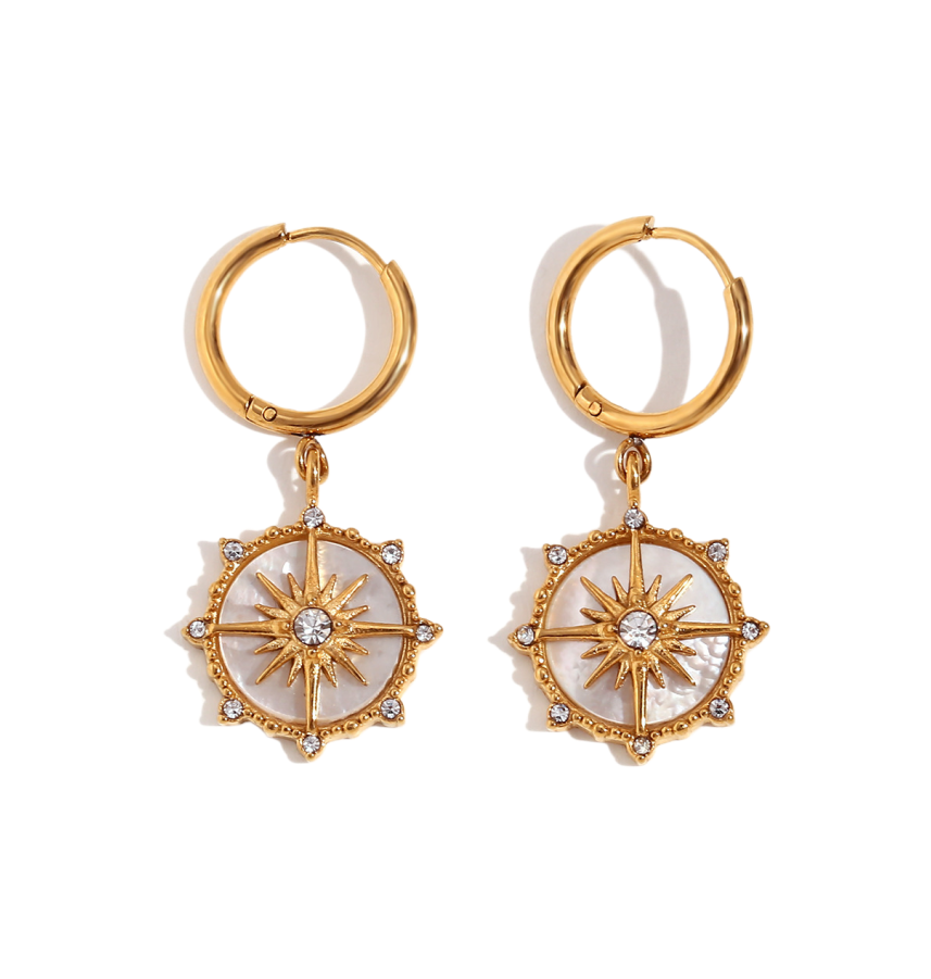 Our White Compass Earrings will guide your way... Pair them with our matching necklace.